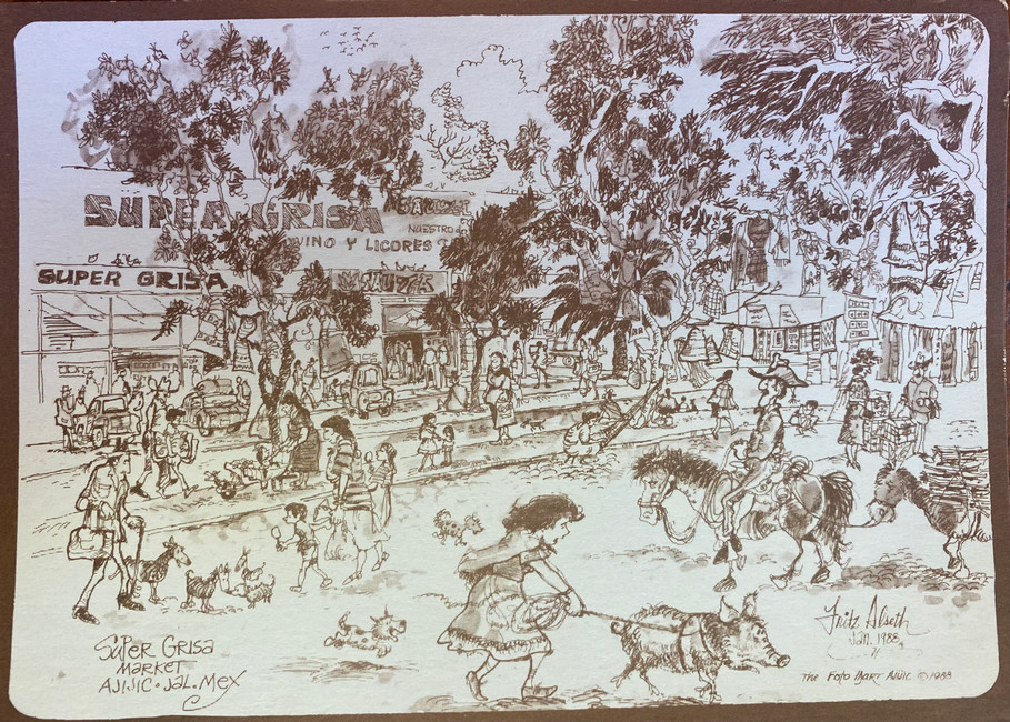 Alseth-1988-Ajijic-plaza-Super-Grisa-supermarket Drawing by Fritz Alseth. 1988. Previous Image Next Image Leave a Reply Cancel reply Your Comment You may use these HTML tags and attributes: <a href="" title=""> <abbr title=""> <acronym title=""> <b> <blockquote cite=""> <cite> <code> <del datetime=""> <em> <i> <q cite=""> <s> <strike> <strong> Name (required) E-mail (required) URI Please enable JavaScript to submit this form. Check here to Subscribe to notifications for new postsΔ This site uses Akismet to reduce spam. Learn how your comment data is processed.