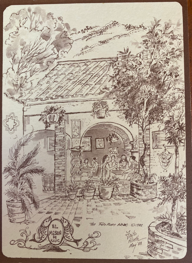Alseth-1988-Ajijic-Restaurant-El-Meson Drawing by Fritz Alseth. 1988. Previous Image Next Image Leave a Reply Cancel reply Your Comment You may use these HTML tags and attributes: <a href="" title=""> <abbr title=""> <acronym title=""> <b> <blockquote cite=""> <cite> <code> <del datetime=""> <em> <i> <q cite=""> <s> <strike> <strong> Name (required) E-mail (required) URI Please enable JavaScript to submit this form. Check here to Subscribe to notifications for new postsΔ This site uses Akismet to reduce spam. Learn how your comment data is processed.